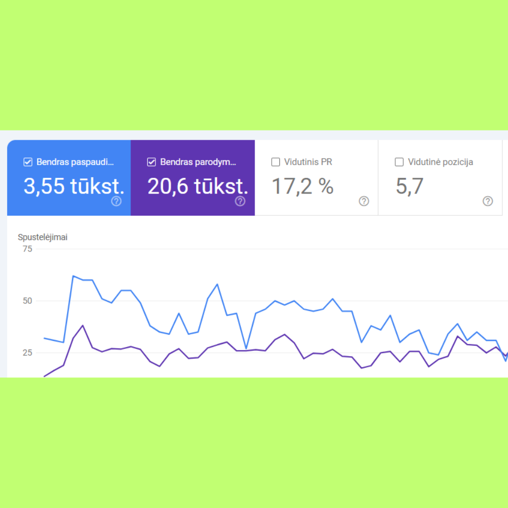 Parenkame realius paieškos žodžius ir optimizuojame puslapius taip, kad tavo svetainė pradėtų kilti Google rezultatuose.