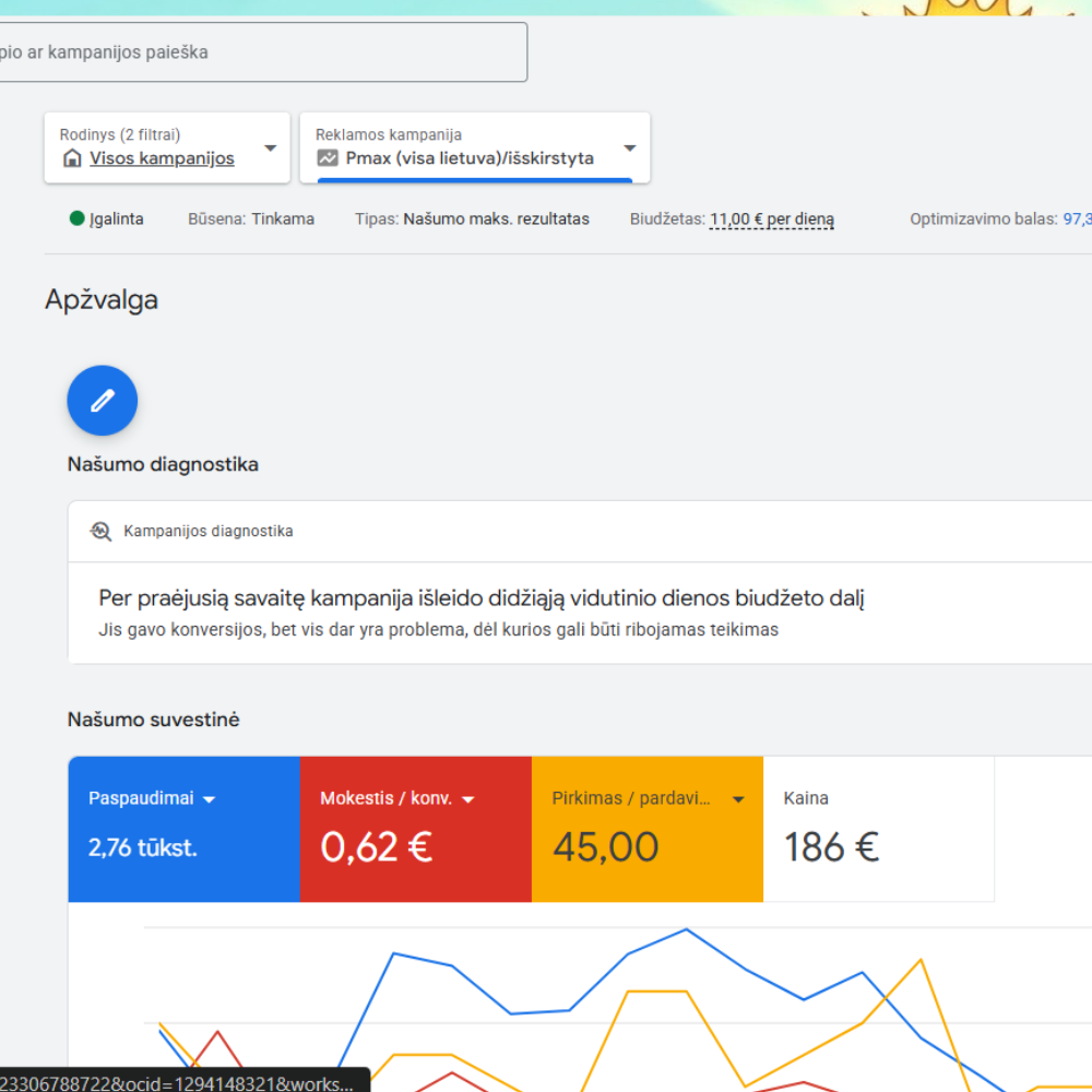 Google Ads nėra „paleidai ir pamiršai“. Dirbame nuolat – stebime duomenis, optimizuojame kampanijas ir koreguojame kryptį pagal realius rezultatus.